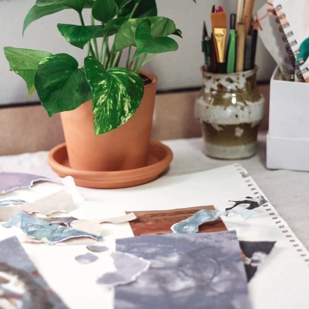 This is a fun, free-flowing class perfect for all levels! In this workshop we will explore the basics of collage and 2-D design through color, form, and composition. We’ll use a variety of materials to create paintings with interesting layers and texture. I will share about my personal process and guide you through the steps to create your own unique piece. You will get to take home 2 8”x10” collage paintings that are ready to frame. Frames will be available for purchase at my studio. Supplies are included, instructions will be given, and I will provide light snacks to enjoy! Feel free to bring your own collage materials to add to your piece.